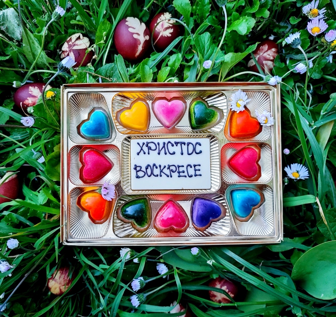 Кутия с 12 бонбона с плочка "Христос Воскресе"