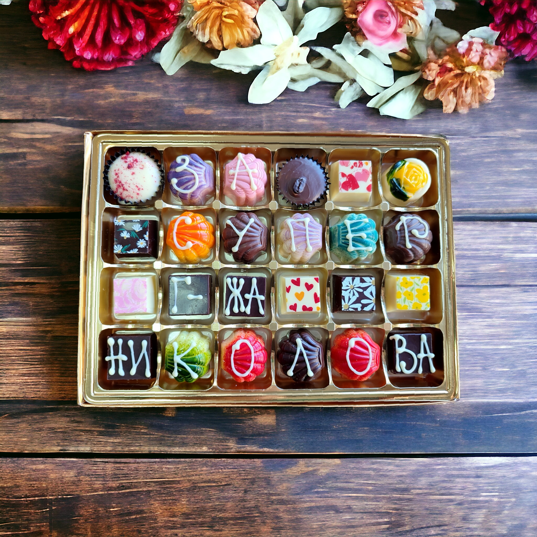 Кутия с шоколадови бонбони 24 бр с ВАШЕТО ПОЖЕЛАНИЕ