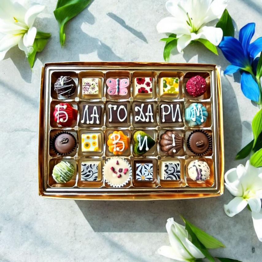 Кутия с шоколадови бонбони 24 бр БЛАГОДАРИМ или БЛАГОДАРИМ ВИ