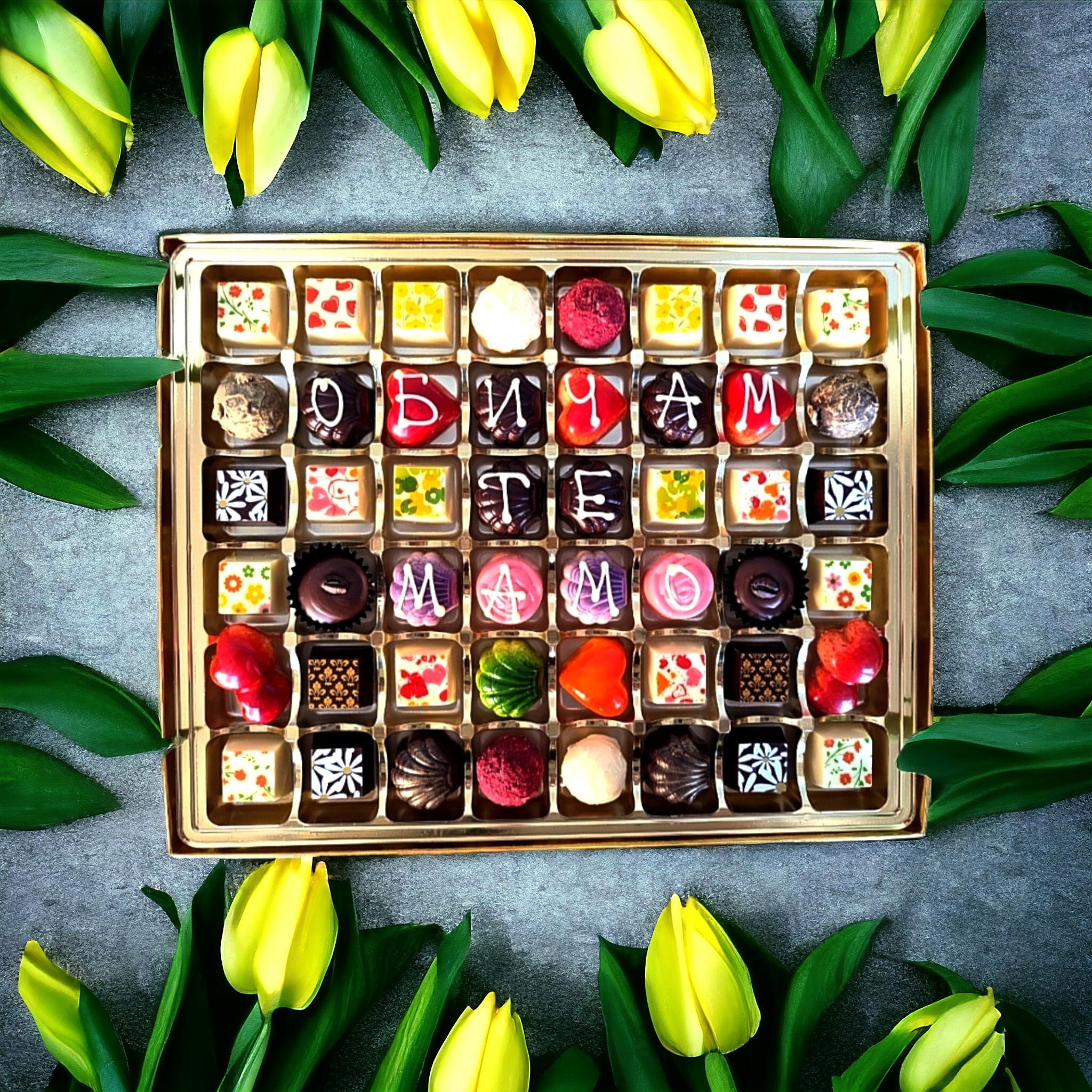 Луксозна кутия с 48 ръчно изработени и ръчно надписани бонбони